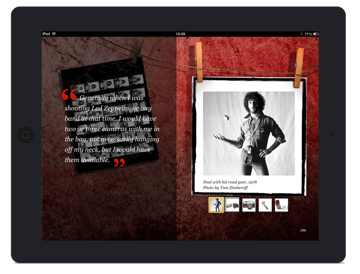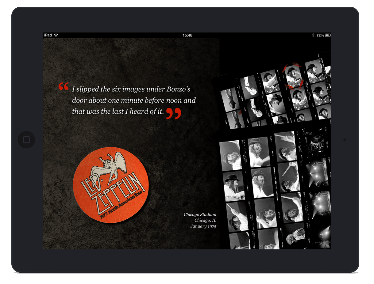 iBook for the 1970s rock band, Led Zeppelin. This book is based on Neal Preston's photographic journey with the band during the 1970s.